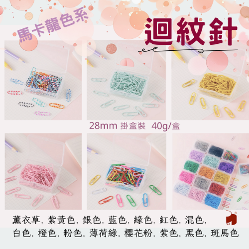 辦公文教通用, 馬卡龍色系 迴紋針40g 塑膠掛盒